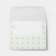 An envelope featuring an illustration of an old fashioned pink tv with rabbit ears on front. Background is green with green polka dots. White section at top flap on back.