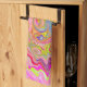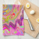 Retro Pink, Yellow and Magenta Abstract Groovy Art Kitchen Towel