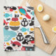 Retro pirates illustration sailing kitchen towel