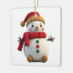 Retro Plush Snowman With Scarf Christmas Ceramic Ornament