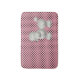 Charming retro style bath mat done in a pink with black polka dot pattern. Graphics of a white fuzzy looking poodle, decorates the left side of the mat. Customize this mat with any text you want. Comes in three sizes.