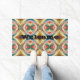 Doormat Welcome Door Mat with customizable template Welcome typography and printed with Retro Pop Art Geometric Colour Block Pattern by TheFabricSeal print on demand shop at Zazzle.com #ZazzleMade ©️Original. https://www.zazzle.com/store/thefabricseal