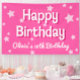 These retro inspired birthday party banner feature a bright pink background with pink stars and retro inspired typography. The look is fun, feminine, and festive! See the collection for more items!