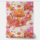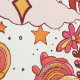 Dive into a vibrant retro world with this psychedelic mushroom pattern featuring rockets, cosmic eyes, and whimsical flora in warm, eye-catching colours.
