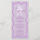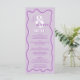 A cool bold wedding menu with custom names with a hand written calligraphy and serif font, 2 names , two styles with Retro boho purple lavender curve squiggle wavy wedding. All the text, names and background colours are customizable for you to mix and match your wedding suite.