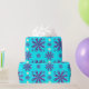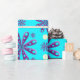 Retro Purple Flowers on Blue Background Wrapping Paper