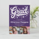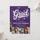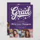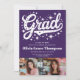 Celebrate your graduate with this bold retro-inspired graduation party invitation! Featuring a purple background, a playful sparkly stars "Grad" script, and three personal photo slots, this design captures a fun and energetic vibe. The back continues the vintage aesthetic , a graduation cap graphic, and space for extra details. Perfect for graduates who love a nostalgic yet trendy look!