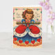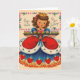 Vintage / Retro Birthday greeting card. Beautiful little queen with a big tray of cupcakes! Queen of Hearts! On Your Birthday!