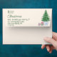 a vintage retro minimalist simple green quirky Merry Christmas tree presents holiday envelope. As you see it features a plain creamy colour background with green handwritten script typography of Return address info. And you got green merry Christmas calligraphy. Along with the your customizable return address. And hand drawn green Christmas tree and colourful presents.