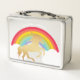 Retro Rainbow Clouds Faux Gold Unicorn Name Kids Metal Lunch Box
