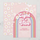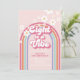 Eight is a Vibe! Retro inspired 8th birthday invitation with 70's style fonts and colours, rainbow, and daisies.