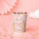 Eight is a Vibe! Retro inspired 8th birthday paper cups with 70's style fonts and colours, rainbow, and daisies in pink