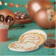 Four Ever Groovy! Retro inspired 4th birthday plates with 70's style fonts and colours, rainbow, and daisies in fall colours. brown, tan and orange colours.