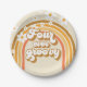 Retro Rainbow Four Ever Groovy 4th Birthday Paper Plate