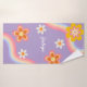 Retro Rainbow kids Bath Towel Set in purple background for baby girls