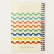 This highly customizable planner notebook features a retro trendy take on stripes with a ric rac wave in weathered tones of red, green, orange, blue, and yellow on an aged white or charcoal grey background. A line of editable text makes for easy customization with a name, event or subject on the front cover and smaller return information text on the back in case the notebook is lost.