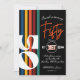 Celebrate a milestone in style with this bold retro “Fifty” birthday invitation. Featuring vertical vintage stripes in teal, mustard, orange, rust, and navy along the left side, paired with a large modern “50” graphic and a sleek black background, this design blends mid-century flair with contemporary typography. The script “Fifty” adds personality, while clean layout details keep the information readable and elegant. Perfect for a 50th birthday party with a stylish, grown-up, slightly nostalgic vibe.