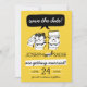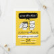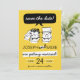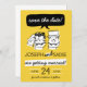Fun retro save the date card featuring bride and groom raptor dinosaurs. Made with easily customizable colour scheme.