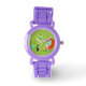 This Retro Reading Woman Kid's Watch features a 1960's style, minimalist art, cartoon drawing of a woman who has her priorities in order. This delightful bookworm is entranced in a real page-turner. The shapely brunette is wearing an aqua dress and red glasses, while holding a blue book. She is seated in a comfy, red egg chair. In front of her, a sleek, black cat in a teal collar is enjoying the peace and quiet that comes from living with a bibliophile. Both woman and cat are in a stylish green room. Overhead, there is a kitschy pendant lamp in shades of yellow and turquoise. To the side, there is a lush, tropical, potted plant in an aqua flowerpot. Kitty, if you need something, you'll have to wait until she finishes this chapter!