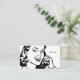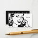 Retro woman holding a phone to her ear "Call Me" to the right/ Back is black with white customizable text