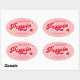 Retro Red and Pink Popcorn Wedding Favour Oval Sticker