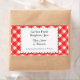 Retro country red and white plaid pattern of checks and stripes on customizable stickers in retro block and scrips letters, on a faux doily.  Customize it to change fonts or sizing, add fields or change background colours or label shape, even save your design for later.