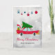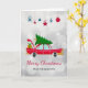 Retro Red Car Carrying a Christmas Tree Card