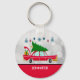 Retro Red Car Carrying a Christmas Tree Keychain