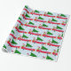 Retro Red Car Carrying a Christmas Tree Wrapping Paper