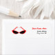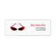 An address label featuring an illustration of a pair of retro red cat eye sunglasses at left. Personalize the red and black text at right with your name and address.
