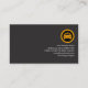 A minimalist black cover accentuated by two red columns at the top of the card. Here lies two slogan options that you can change to suit your service type. Near the base is a yellow taxi logo that you can use. Beside it are your prestigious name, job title and contact details.