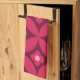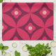 Retro Red Flowers on Mid Century Circles Pattern Kitchen Towel