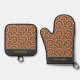 Retro Red Gold Teal Circles Personalized Oven Mitt & Pot Holder Set