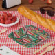These plates feature a vibrant and nostalgic pattern of retro-style Christmas ornaments in festive red, green, and white stripes, evoking classic holiday charm. Inspired by midcentury holiday décor, each ornament showcases playful, vintage aesthetics that bring a touch of timeless warmth to any holiday season. Perfect for anyone who loves the look of vintage Christmas decorations, this design adds a unique, joyful twist to your holiday wardrobe or décor. Whether you’re attending festive gatherings or simply embracing the holiday spirit, this pattern is sure to stand out with its cheerful, retro flair.
