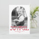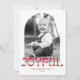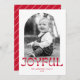 Cute holiday photo card featuring your vertical photo inside of a white arch frame. "Joyful" is displayed in fun, red retro lettering with your name and the year shown below. The retro Christmas card reverses to display a red and white diagonal stripe pattern.