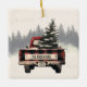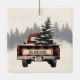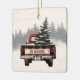 Retro Red Plaid Christmas Truck Custom Family Name Ceramic Ornament