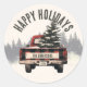 Retro Red Plaid Christmas Truck Custom Family Name Classic Round Sticker