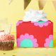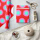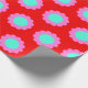 This vibrant and playful wrapping paper features a fun pattern of mod 60s boho pop flowers in pink and turquoise on a red background.