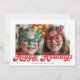 Retro Red Script Happy Holidays One Photo Holiday Card
