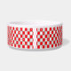 This Retro Red and White Starbursts Ceramic Pet Bowl is so adorably space age you won’t be able to contain your enthusiasm. And, why would you want to? This 1960’s mid century modern inspired design features a dark heather grey background and rows of perfectly imperfect rectangles in cheery red, white, and dove grey. Kitschy white and red starbursts are placed in randomly selected rectangles. This mod pattern will make you feel like you jumped in a time machine and set the dial for irresistibly vintage!