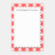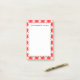 Custom stickies with retro letters and a country red and white plaid pattern on a faux doily background.