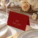 Featuring a playful red and white colour scheme, this place card showcases delicate design elements that evoke a nostalgic, retro feel. Its timeless aesthetic blends sophistication with whimsy, offering a refined way to welcome your guests. Perfect for any wedding theme, this place card not only helps organize your seating arrangements but also adds a personal and stylish flair to your celebration. Pair it with other coordinating items from the collection for a complete and cohesive wedding look.