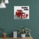 Une magnifique photo en couleur postée d'une vieille remorque classique de bébé voiture vintage exposée lors d'un spectacle de voitures anciennes. La finition miroir chromé, le subtil détail de la peinture graphique de flamme, la brillante, bien cirée, couleur bonbon de la peinture rouge cerise - elle est une beauté, c'est sûr! Customisez cette affiche géniale avec votre propre texte, retirez les mots, ou profitez-en avec Retro Ride comme montré.