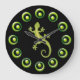 Get a little neon and retro with these deco rings and circles and lime green lizard over black. wall clock design.