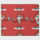 Retro Robot Cartoon Fun Red and Silver AI Bot Wrapping Paper