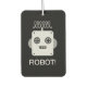 This fun retro robot design features a square grey face with a cheerful smile, mismatched button-style eyes, and a playful coil antenna on top. Set against a bold black background, the minimalist robot illustration has a quirky, vintage-inspired charm. Its clean shapes and simple details give it a lighthearted, futuristic personality that feels both nostalgic and modern.