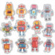 Gear up for some retro fun with our 'Retro Robot Rendezvous Sticker Collection', featuring a quirky lineup of robot designs in bright, playful colours. Perfect for tech enthusiasts and collectors, these glossy stickers add a cool, vintage vibe to any surface.