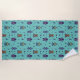 Retro Robotic Robots Colourful Blue Pattern Beach Towel