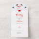 A fun yet stylish and elegant all in one design inspired by 1950's Rockabilly styles in red white and blue and featuring cute red hearts and rose banner and swallow birds. Editable script text, ideal for couples looking for wedding stationery with an old fashioned retro look. So easy to customize with your personal wedding details and a handy tear off RSVP card for your convenience.