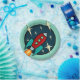 Cartoon rocket ship graphic illustration paper plate. Background colour can be customized.